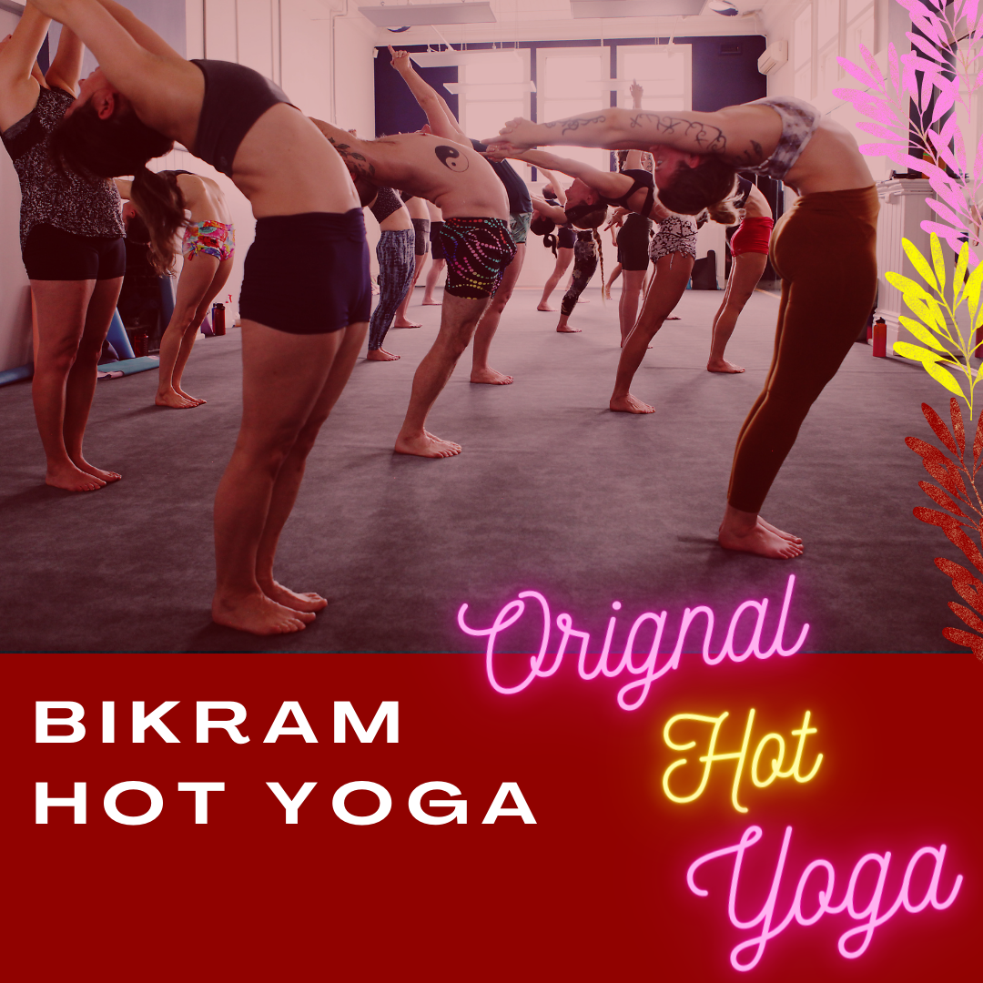 Bikram's Hot Yoga is a therapeutic hatha yoga sequence of 26 postures and two breathing exercises conducted in a room heated to 38ÂșC and 40% humidity over 90 minutes. Combining the heated room and the 90-minute class duration is essential to help improve flexibility to avoid the risk of overstretching.